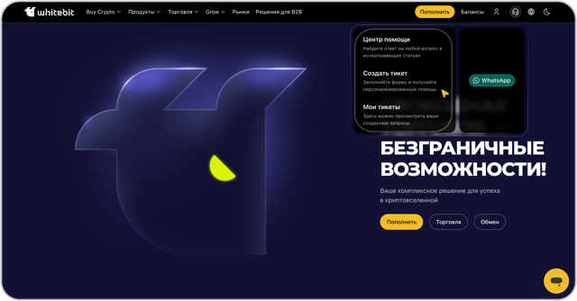 Обратите внимание: служба поддержки WhiteBIT консультирует исключительно по вопросам, касающимся функционала биржи, и не предоставляет торговых рекомендаций.