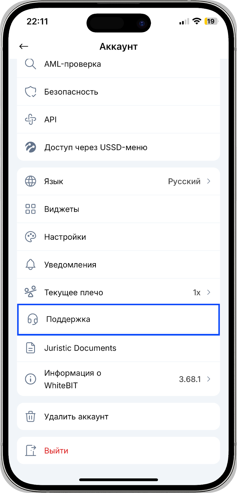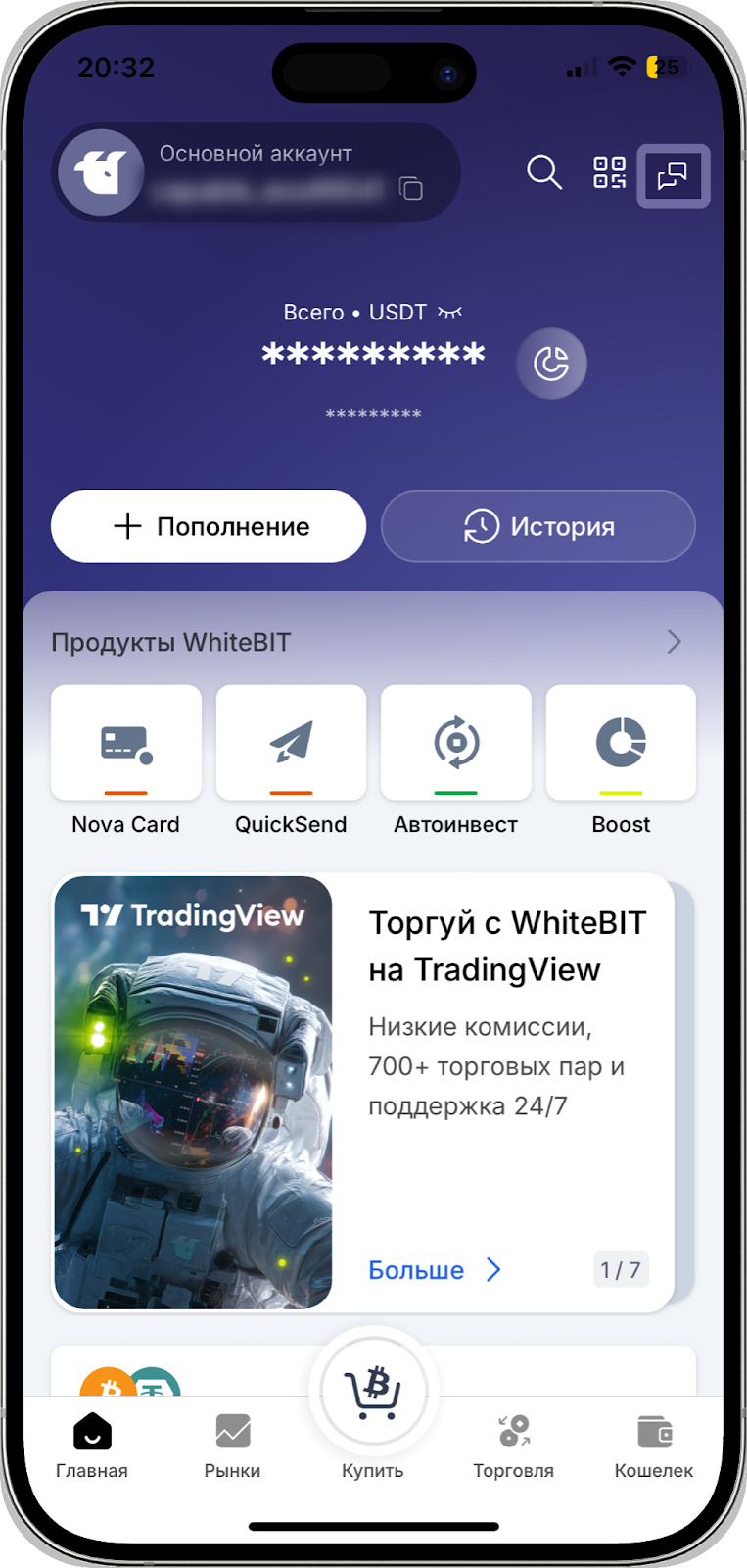 В мобильном приложении WhiteBIT