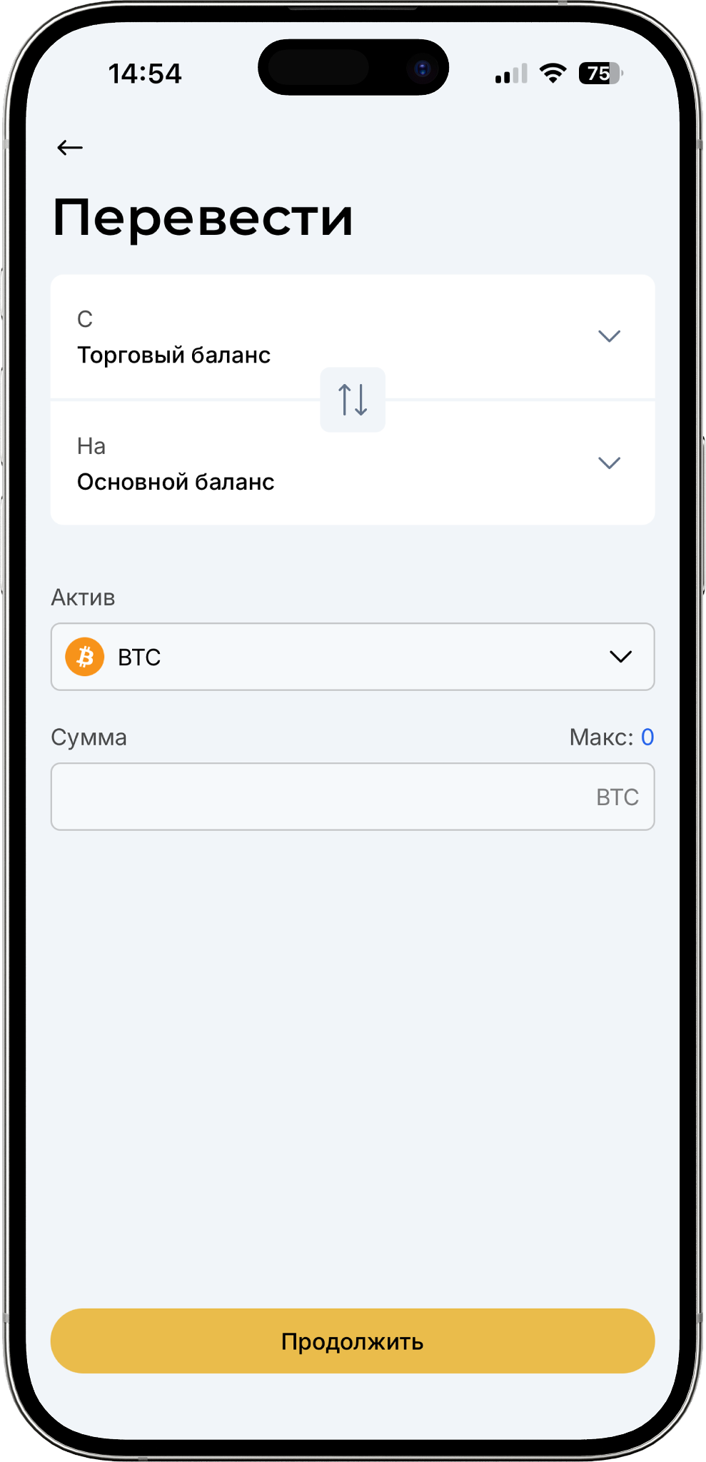 Обратите внимание: даже если ваши средства находятся не на "Основном" балансе, во время подтверждения вывода система автоматически предложит вам перевести их с "Торгового" или "Залогового".