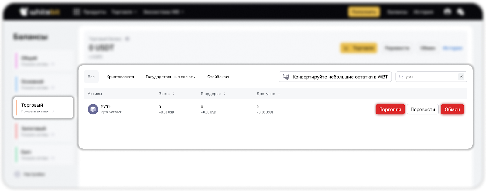 - Перейдите на вкладку “Торговый” баланс” (или “Залоговый” баланс в случае с маржинальной и фьючерсной торговлей).
