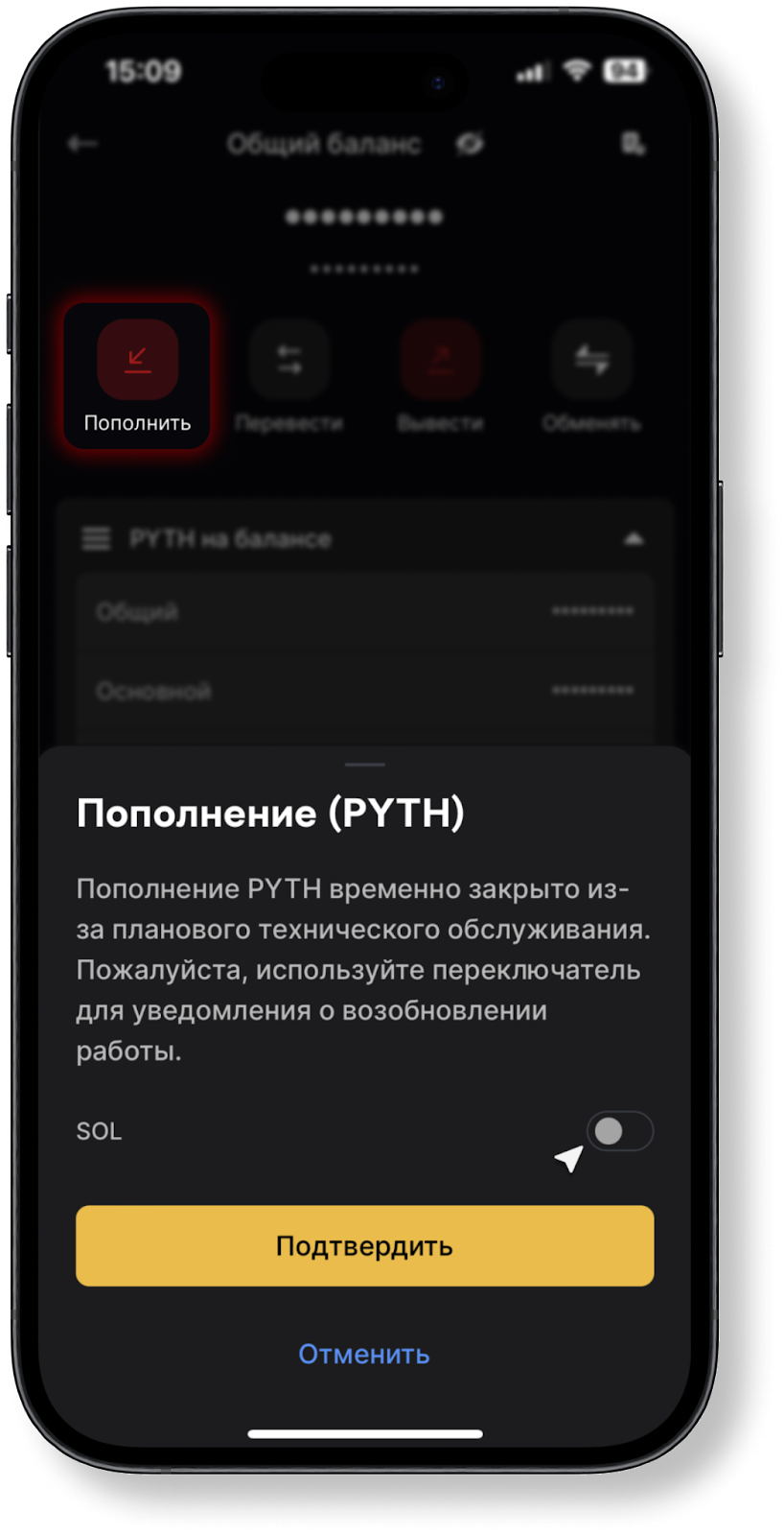 Пополнение баланса и вывод средств закрыты на техническое обслуживание