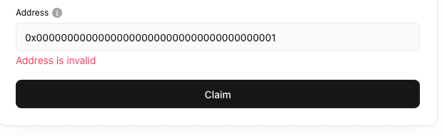 1. Если адрес введен некорректно – вы увидите соответствующее уведомление. Если же все верно – нажмите кнопку "Claim";