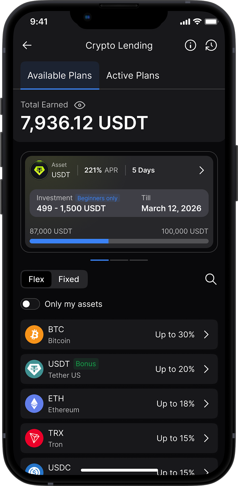 Криптодепозит для институциональных клиентов позволяет компаниям вкладывать свои криптовалютные активы. Таким образом, компании могут получать проценты от своих вложений. Функционал позволяет эффективно управлять своими активами благодаря гибким срокам вкладов, максимальным процентным ставкам и специальным установленным лимитам.