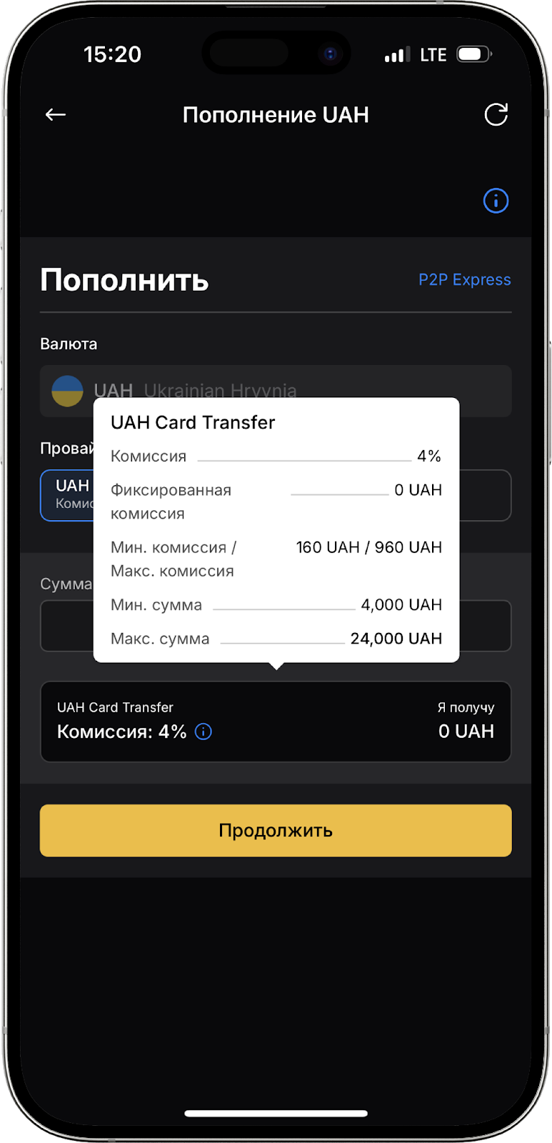 После ознакомления с комиссиями, нажмите «Продолжить».