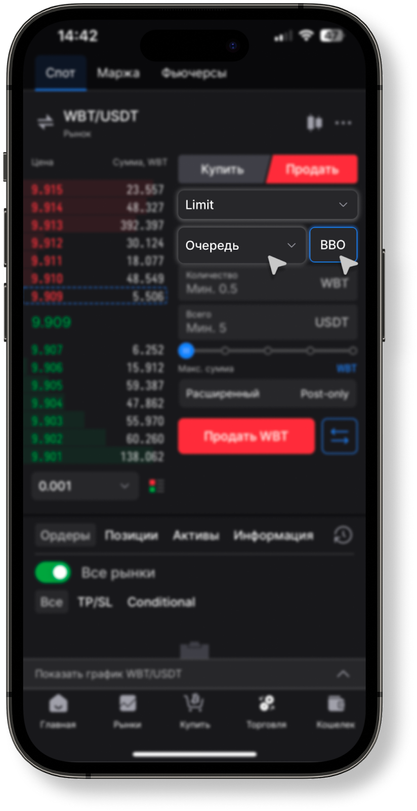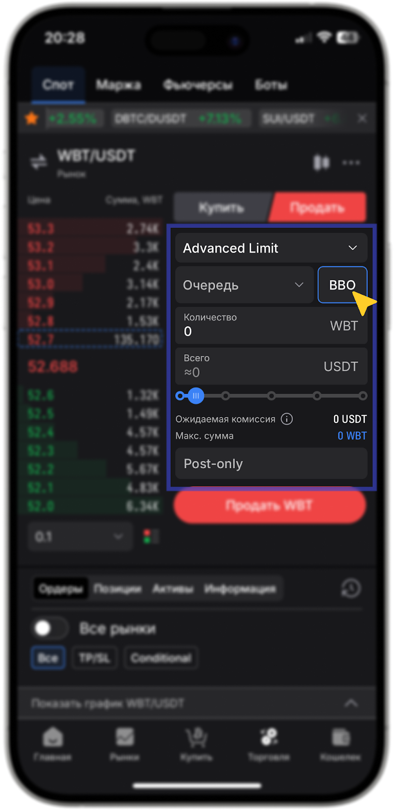 Для того чтобы создать ордер с BBO в нашем мобильном приложении: