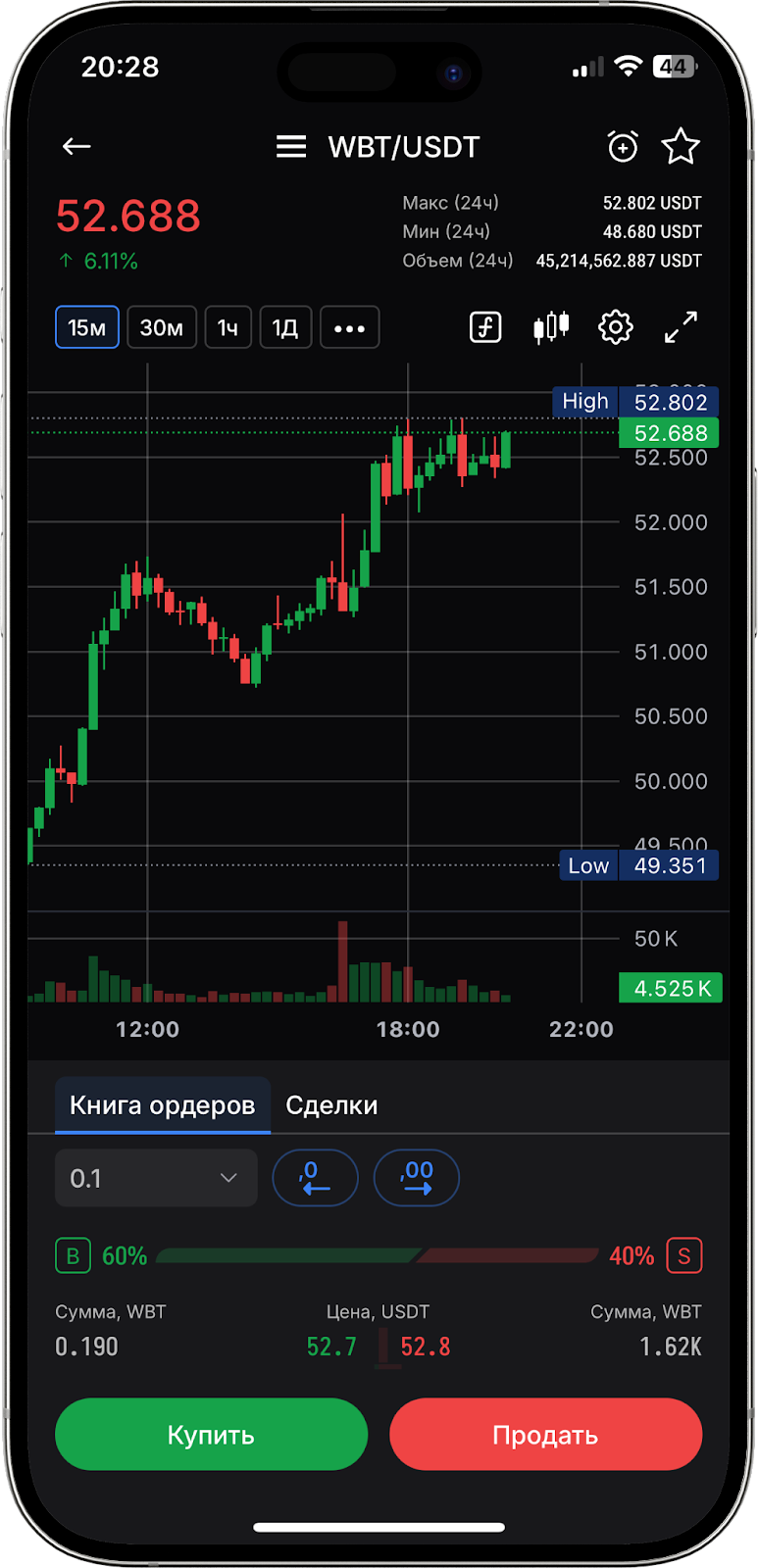 Давайте на практике рассмотрим, как разместить ордер с BBO в веб-версии биржи, а также в нашем мобильном приложении.