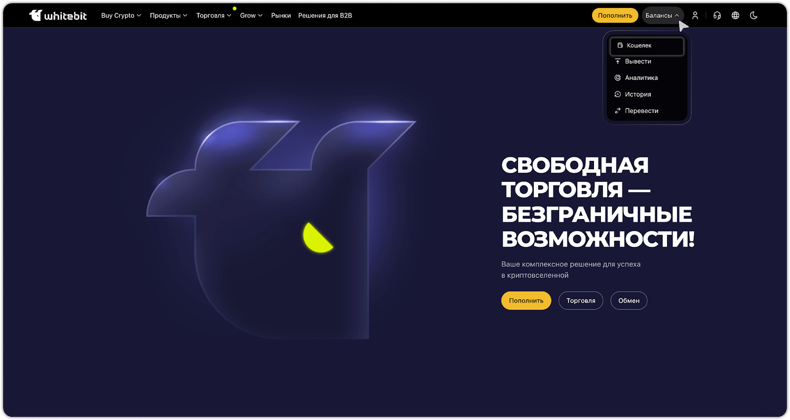 Чтобы пополнить ваш баланс через данного провайдера на сайте WhiteBIT, пожалуйста, следуйте простой инструкции: