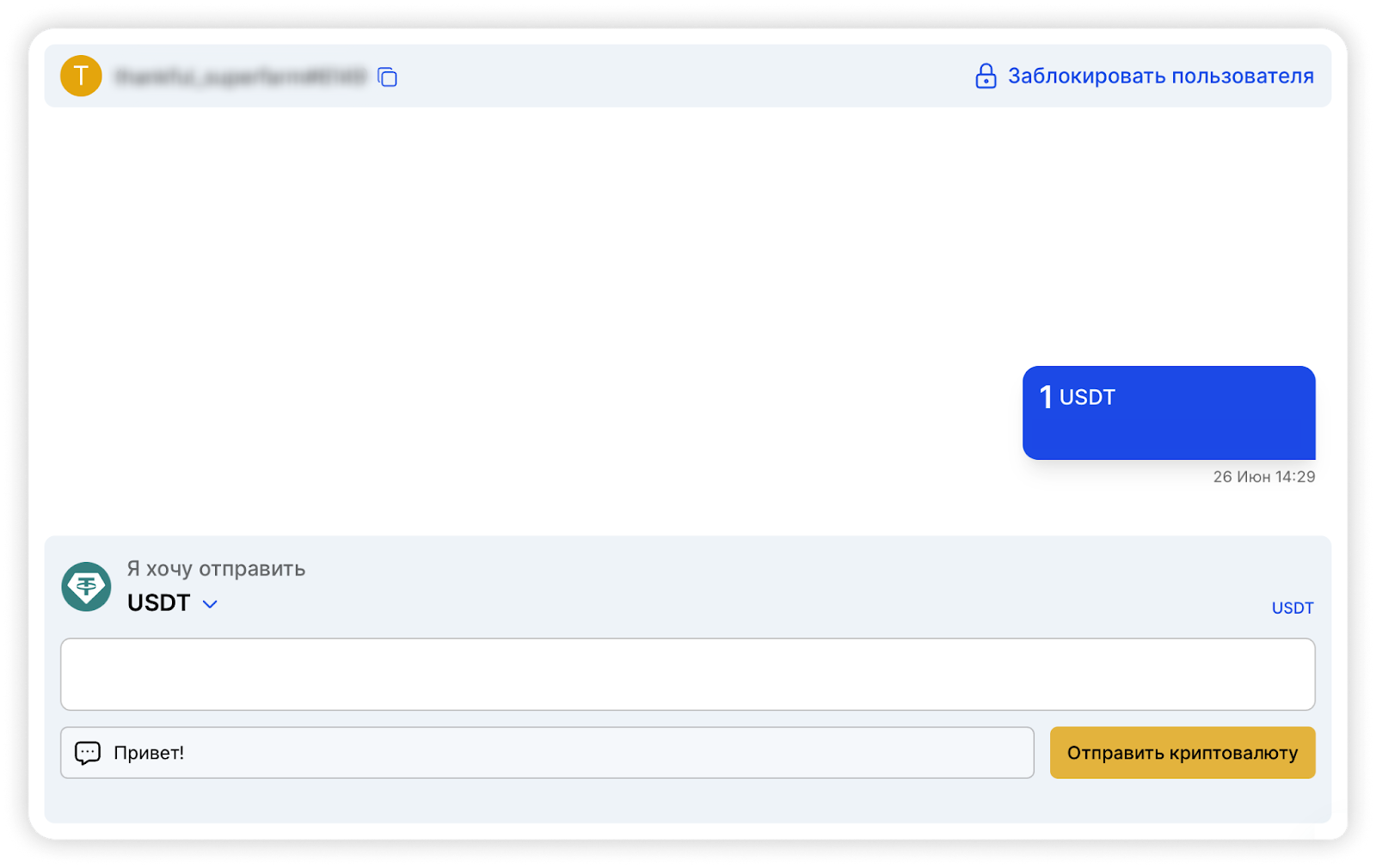 Готово! После успешной транзакции вы можете проверить историю транзакций QuickSend с конкретным получателем в личном чате между вами и получателем.