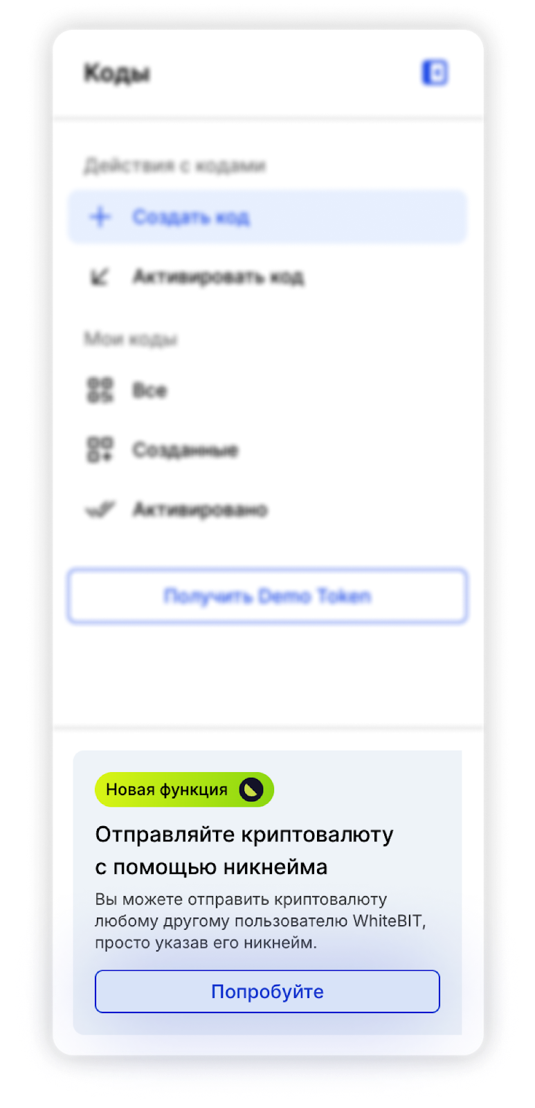 Функция Shake2Send доступна для пользователей приложения WhiteBIT и позволяет находить других пользователей WhiteBIT и отправлять им средства, просто встряхнув телефон. Чтобы начать: