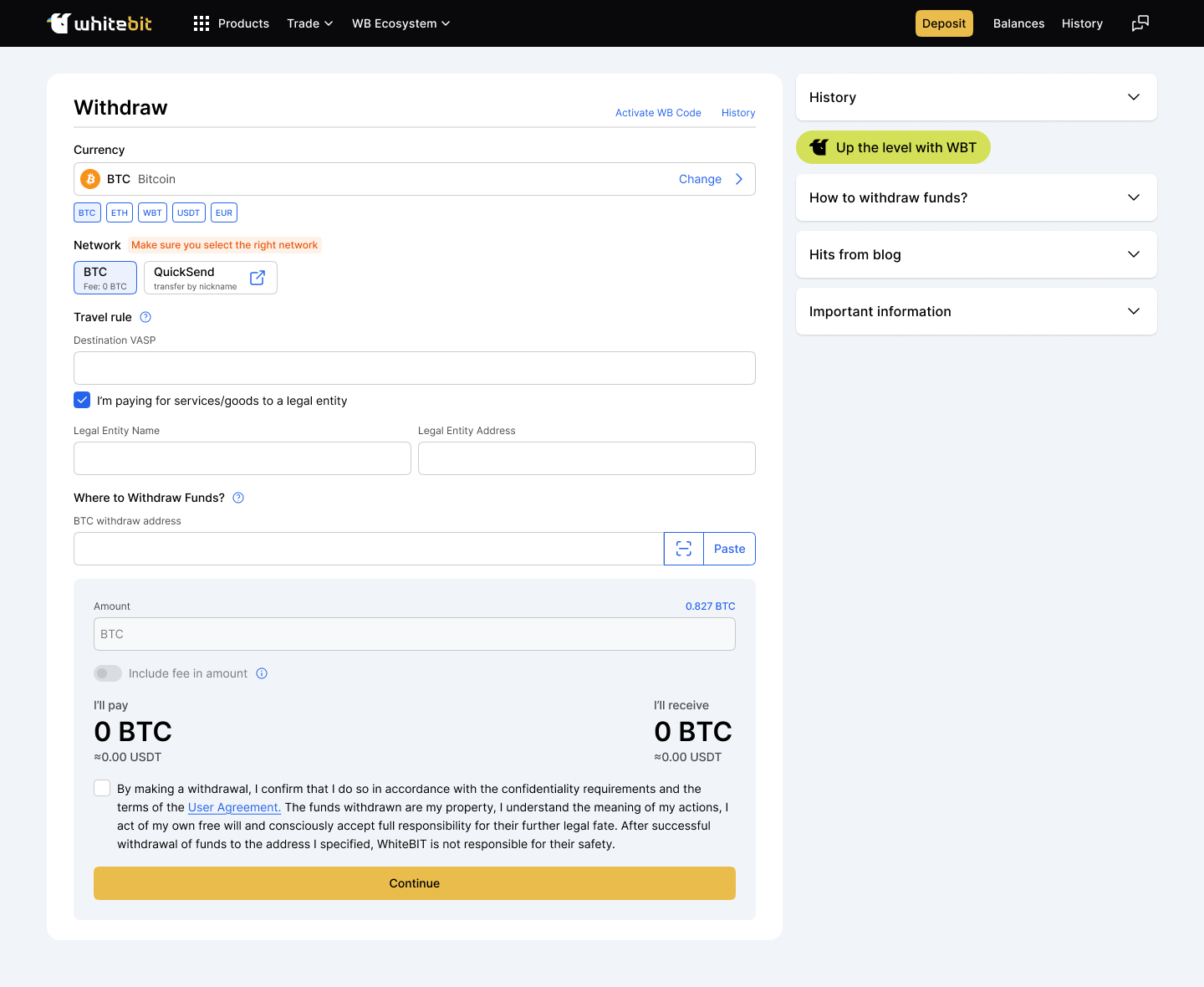 Для пользователей из региона ЕЭЗ теперь требуется дополнительная информация при выводе криптовалюты. Необходимо заполнить следующие поля:
