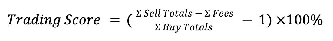 Trading Score (TS, %) — это метрика эффективности, позволяющая оценить прибыльность ваших сделок. Она сравнивает общую сумму, полученную от продажи активов (за вычетом комиссий), с суммой, потраченной на их покупку. Или наоборот, если это короткая позиция, вы сначала продаёте, а затем покупаете. Это помогает точно определить реальный доход от торговли без учёта кредитного плеча.