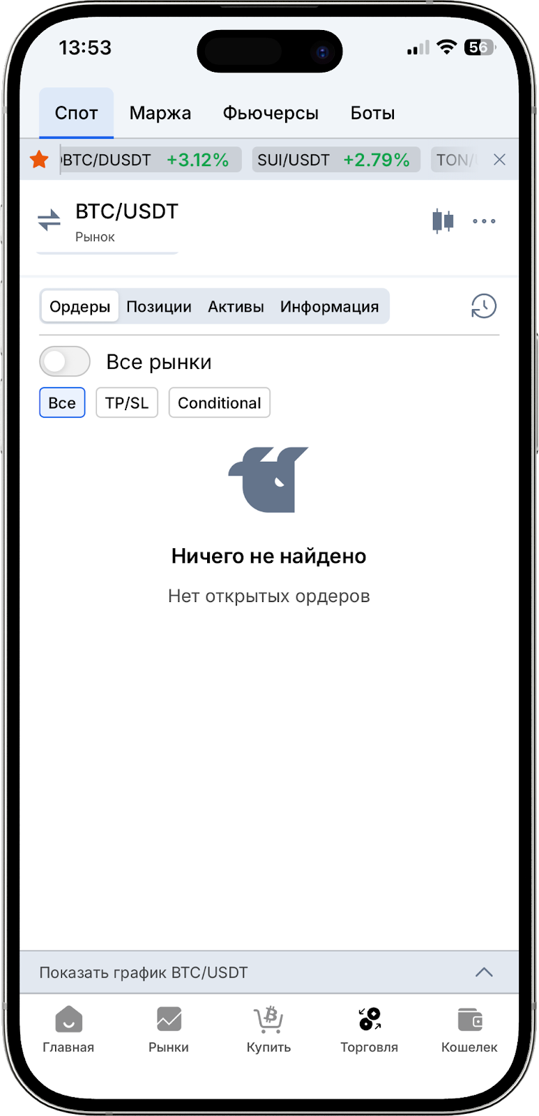 - Проверять активные ордера (включая TP/SL и условные ордера).