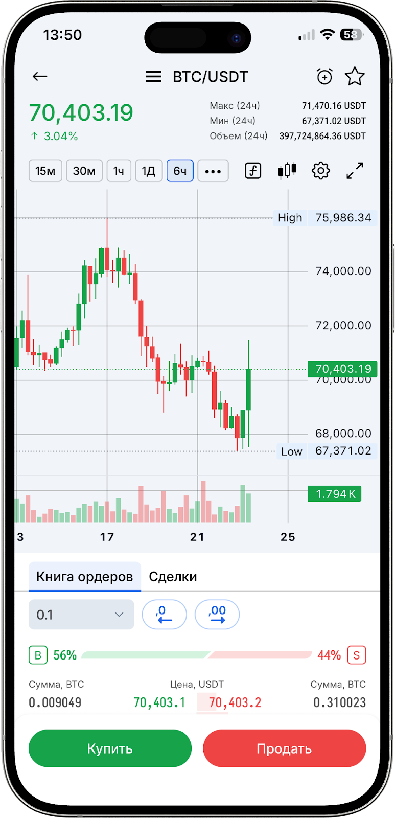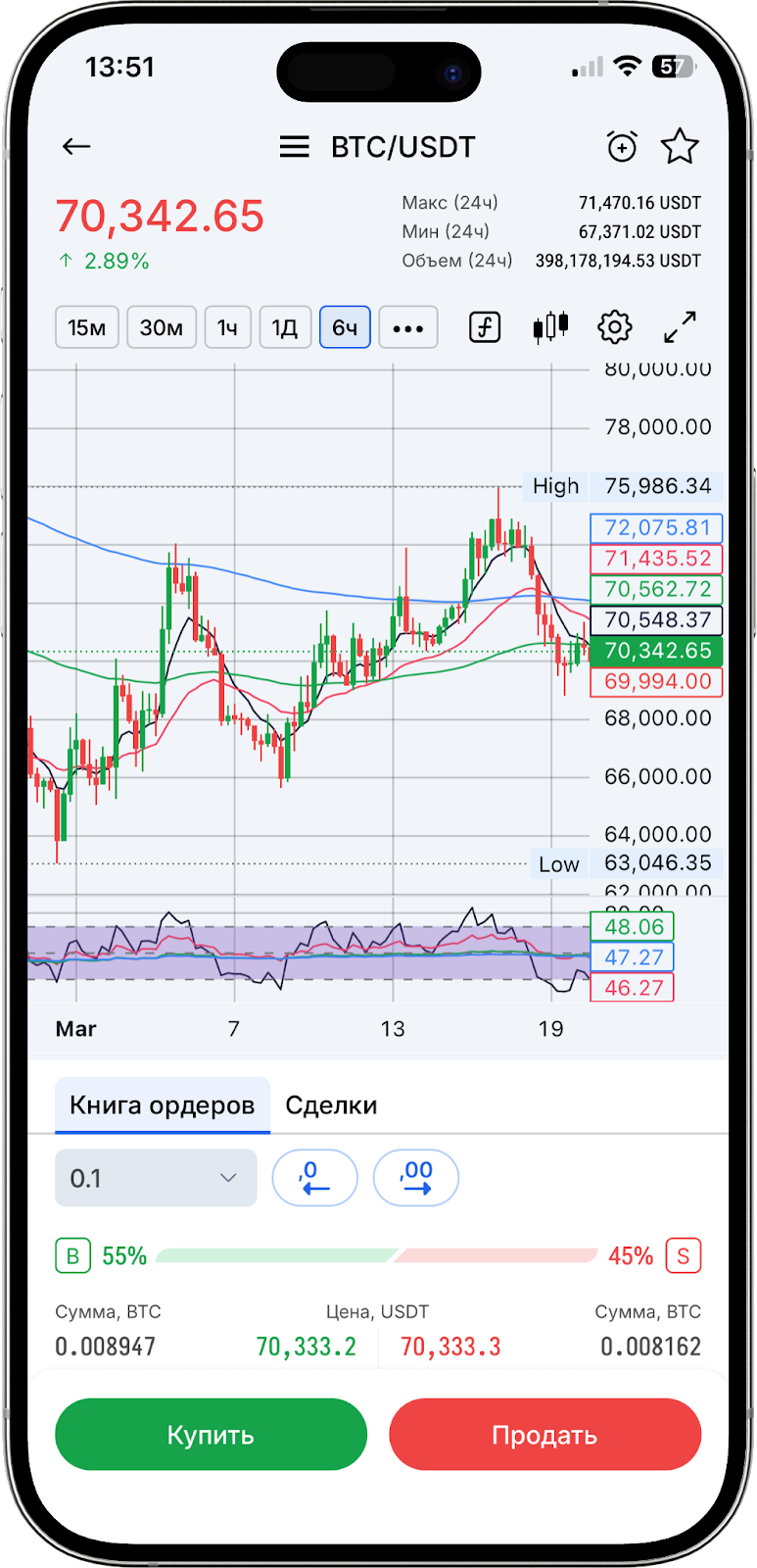 Торговый терминал — это универсальный инструмент для анализа рынка и совершения сделок. Он объединяет в себе график с расширенными настройками, биржевой стакан, историю торгов и удобную систему размещения ордеров.