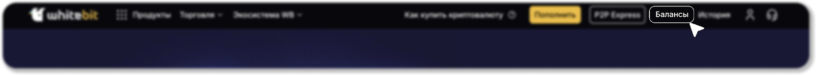 в правом нижнем углу экрана (в приложении WhiteBIT в правом верхнем углу нажмите