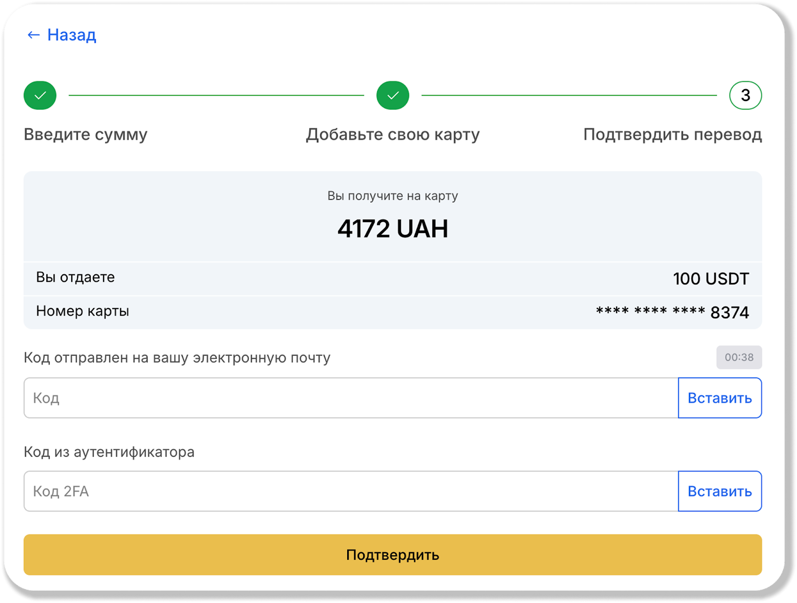 Обратите внимание: с помощью функции P2P Express вы также можете обменять ваши UAH на USDT. Для такого обмена вам нужно будет перевести UAH на указанную провайдером карту.