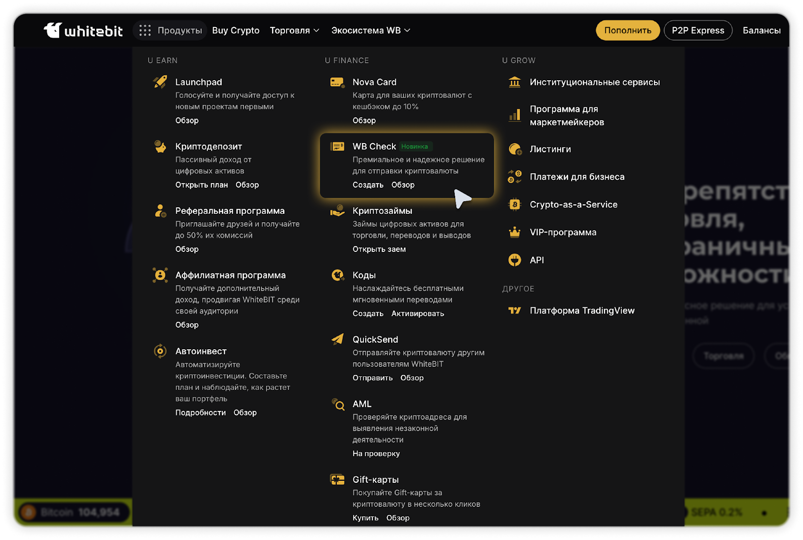 WB Check - инновационная функция, которая позволяет переводить средства безопасным, удобным и современным способом.