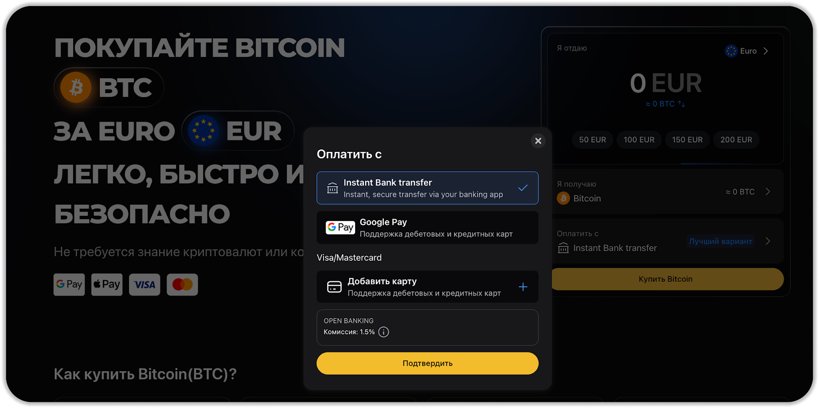 Это простой способ купить криптовалюту за фиат (государственную валюту) в несколько кликов. Как это сделать: