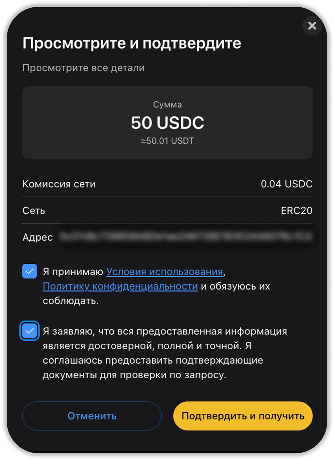 - Убедитесь, что вы указали правильный адрес получателя на платформе отправителя средств, и подтвердите перевод.