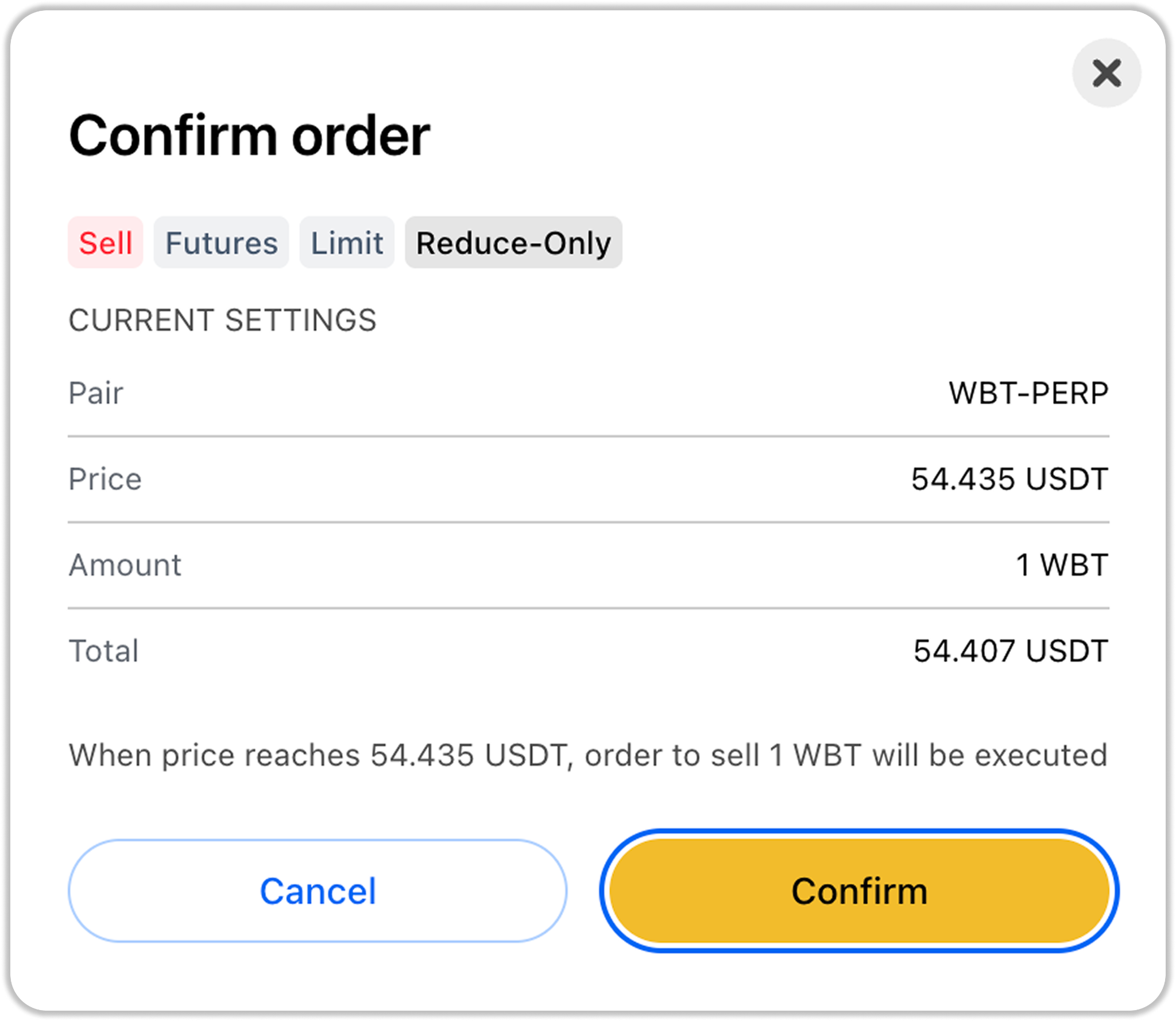 Обратите внимание, что Reduce-only недоступен для Базовых ордеров в веб- или мобильном интерфейсе.