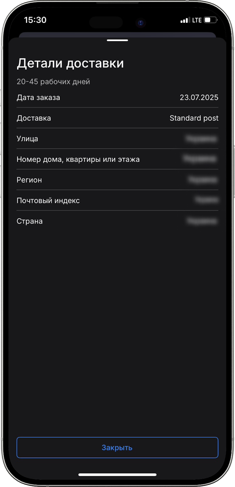 - После этого откроется вкладка с отображением детальной информации касательно доставки: