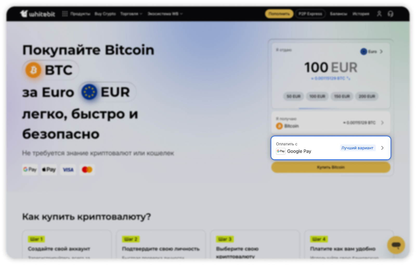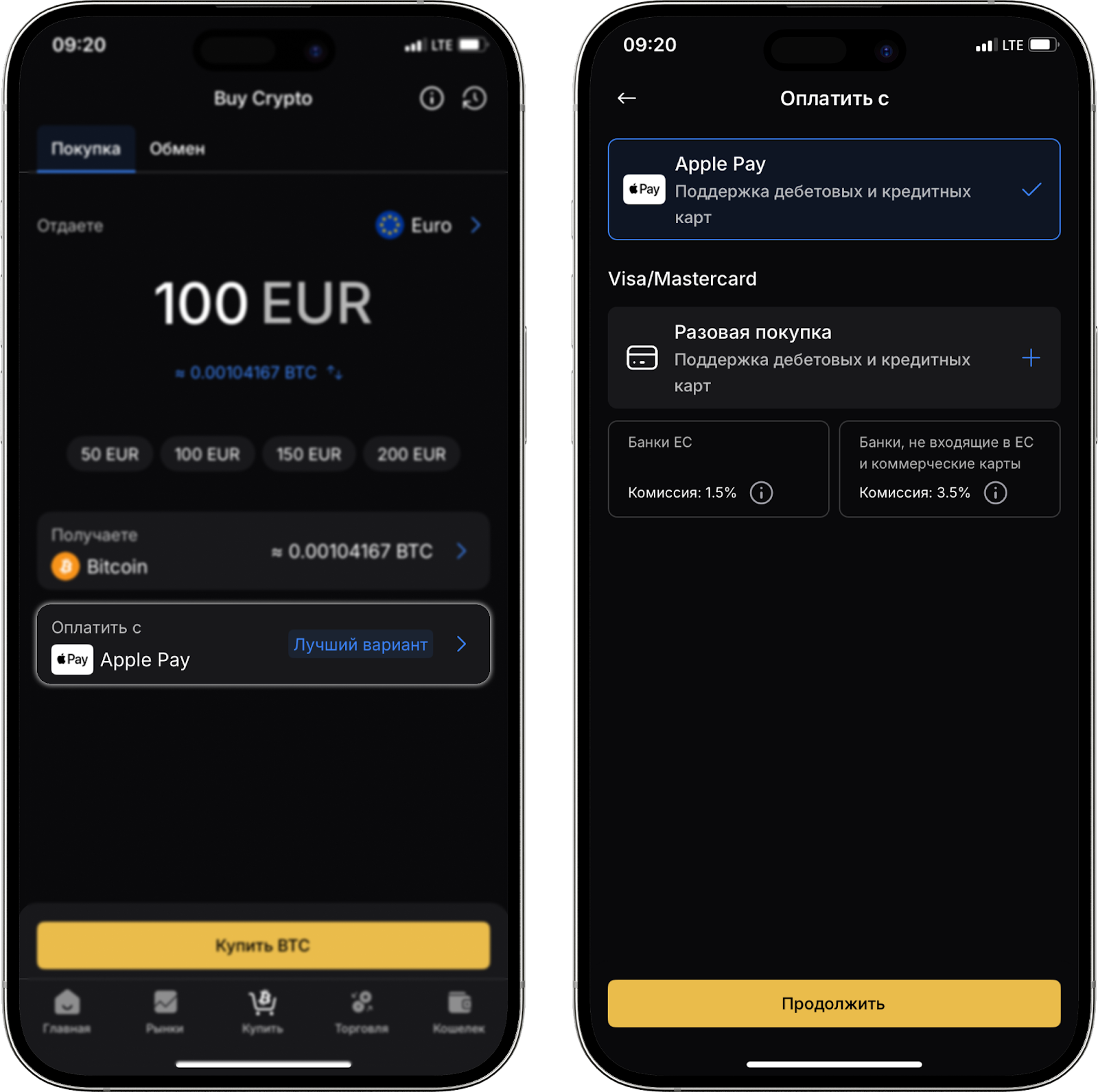 Обратите внимание: функция “Buy Crypto” доступна пользователям с базовым, профессиональным и продвинутым уровнем верификации.