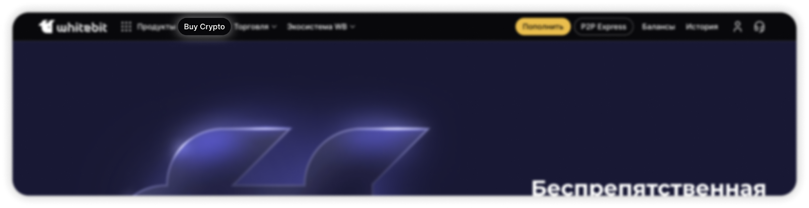 - Перейдите в раздел Buy Crypto, нажав на соответствующую кнопку в хедере (верхней части) сайта;
