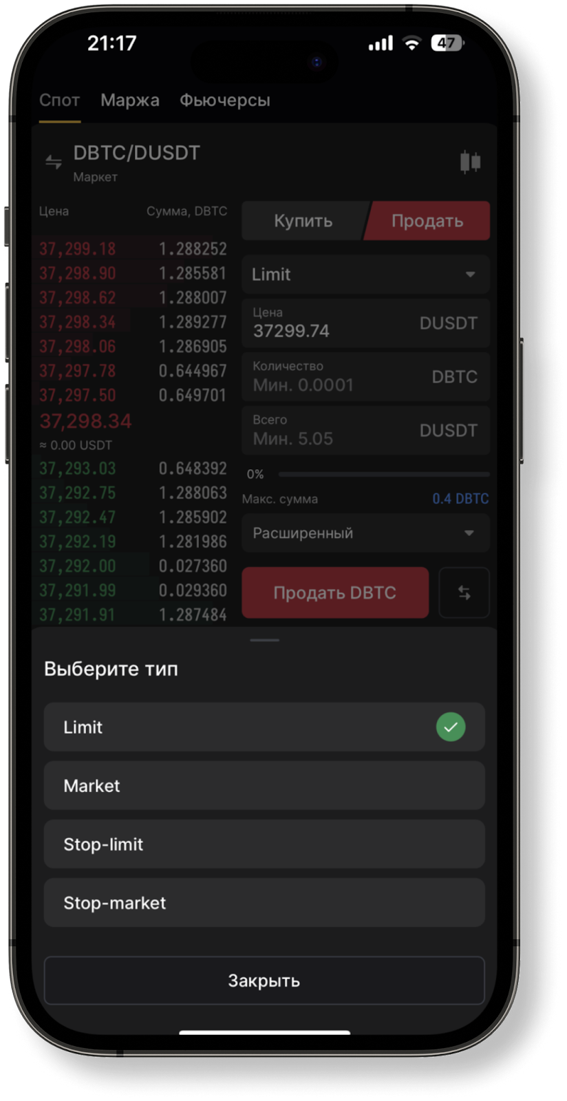 Как было указано в статье о типах ордеров на WhiteBIT, вы можете применять любой из них в зависимости от торговых целей и стратегий. Давайте рассмотрим на практике, как работать с ордерами в приложении биржи.