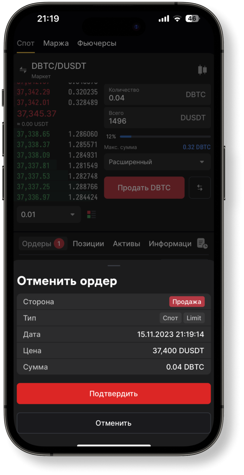 Отменить ордер.