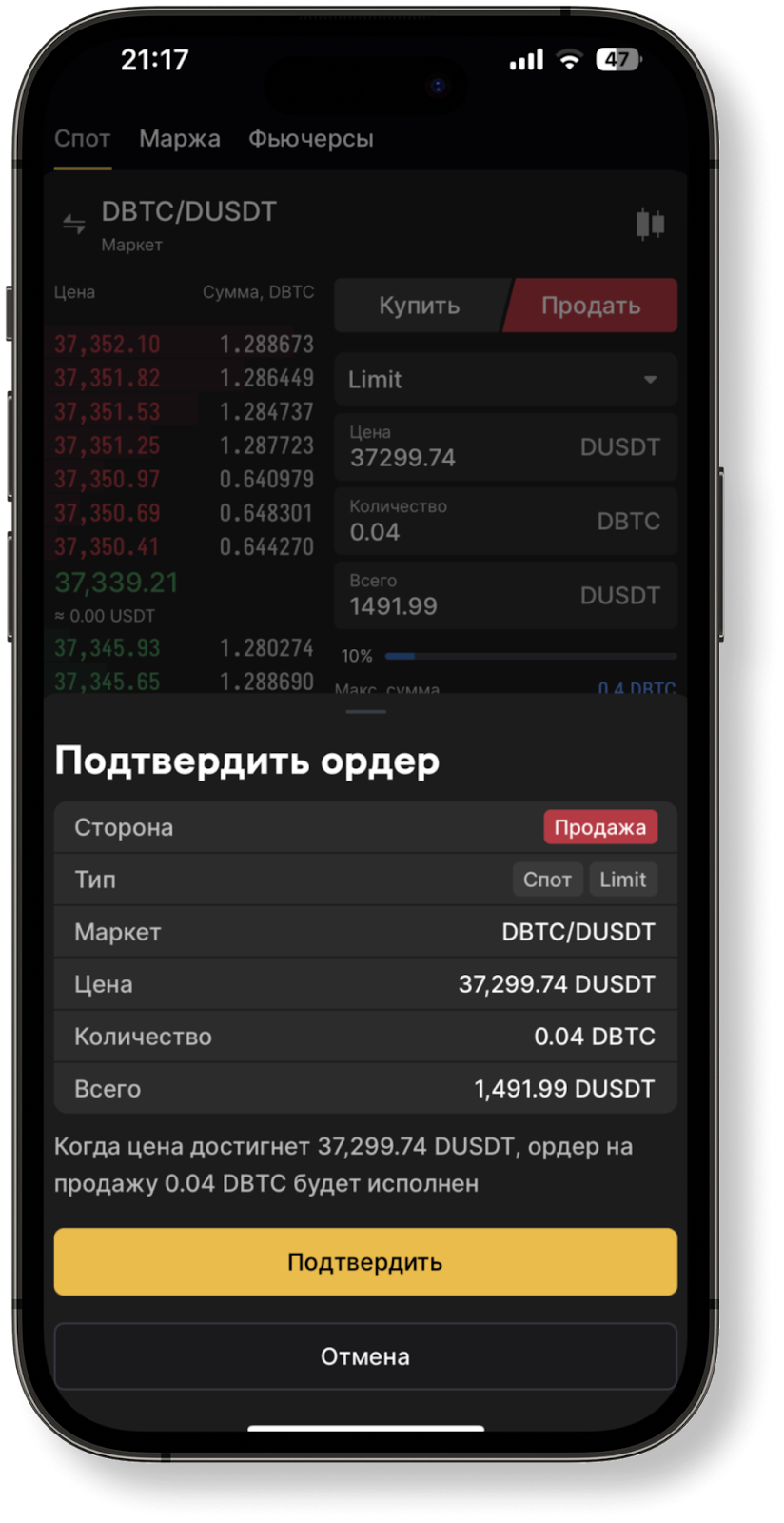 Выставить ордер.