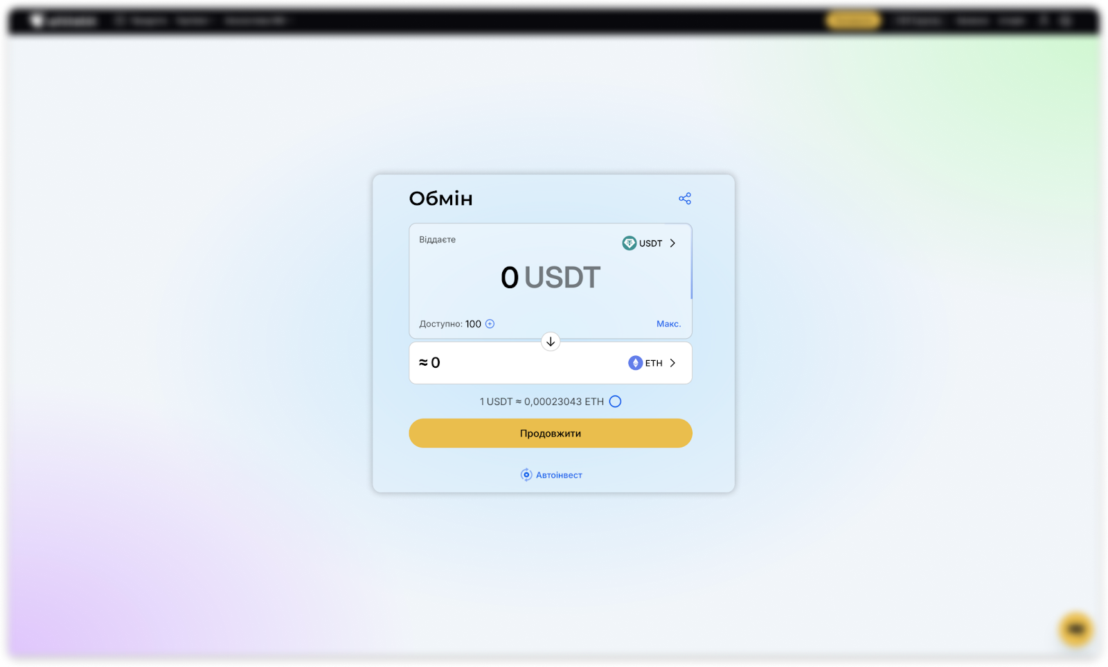 Зверніть увагу: для використання функціоналу Обміну ваші кошти можуть бути як на Торговому, так і на Основному балансах. У процесі буде відображатися сумарне значення з обох балансів і в результаті здійснення обміну кошти будуть зараховані на Основний баланс.