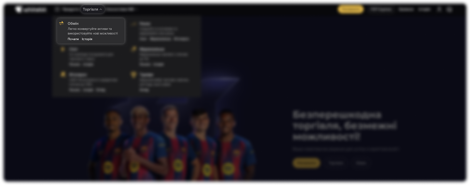 Ви можете знайти сторінку “Обмін” у розділі “Торгівля” у верхньому лівому куті екрана, натиснувши на вкладку “Обмін”.