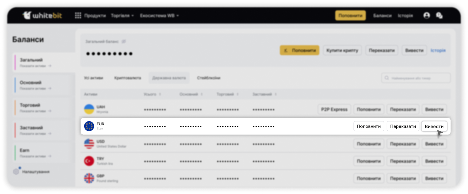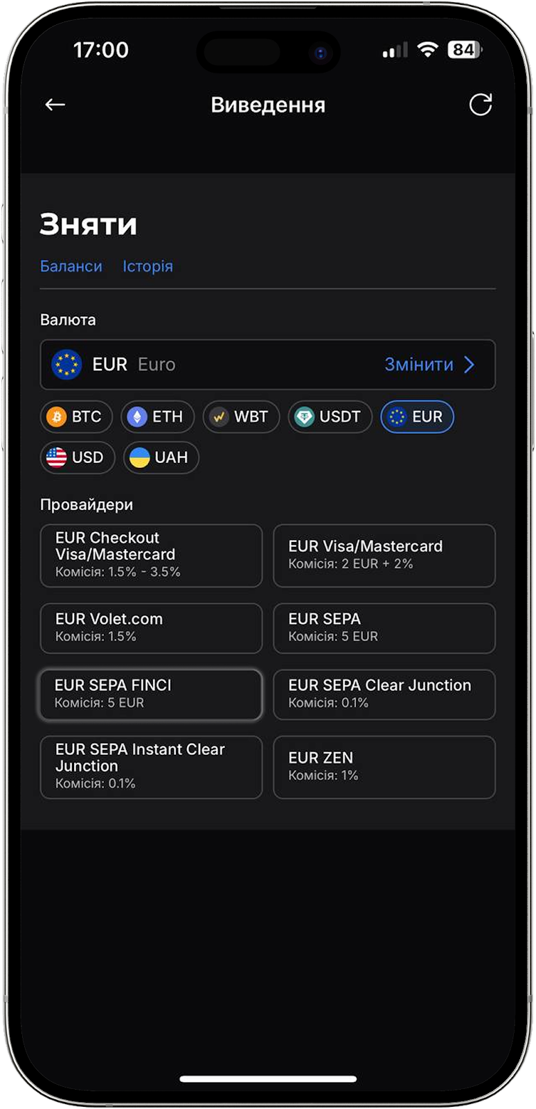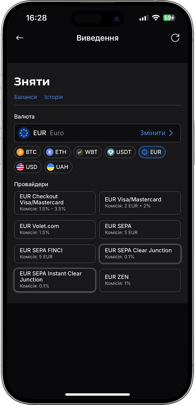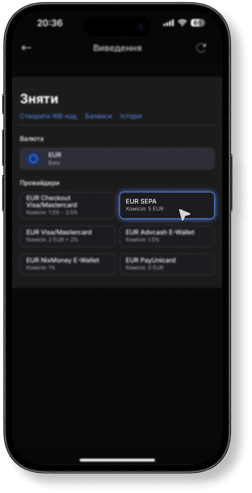 Зверніть увагу: виведення коштів через SEPA на IBAN доступне тільки для EUR.