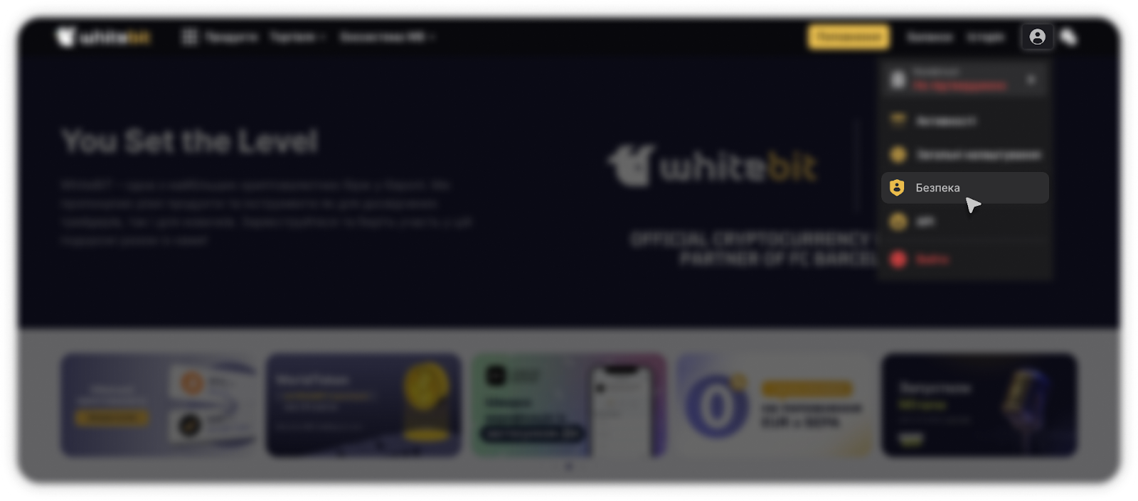 1. Увійдіть у ваш обліковий запис WhiteBIT і перейдіть у розділ "Налаштування акаунта" та "Безпека";