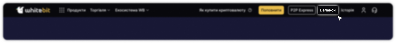 На головній сторінці біржі перейдіть у розділ “Баланси”.