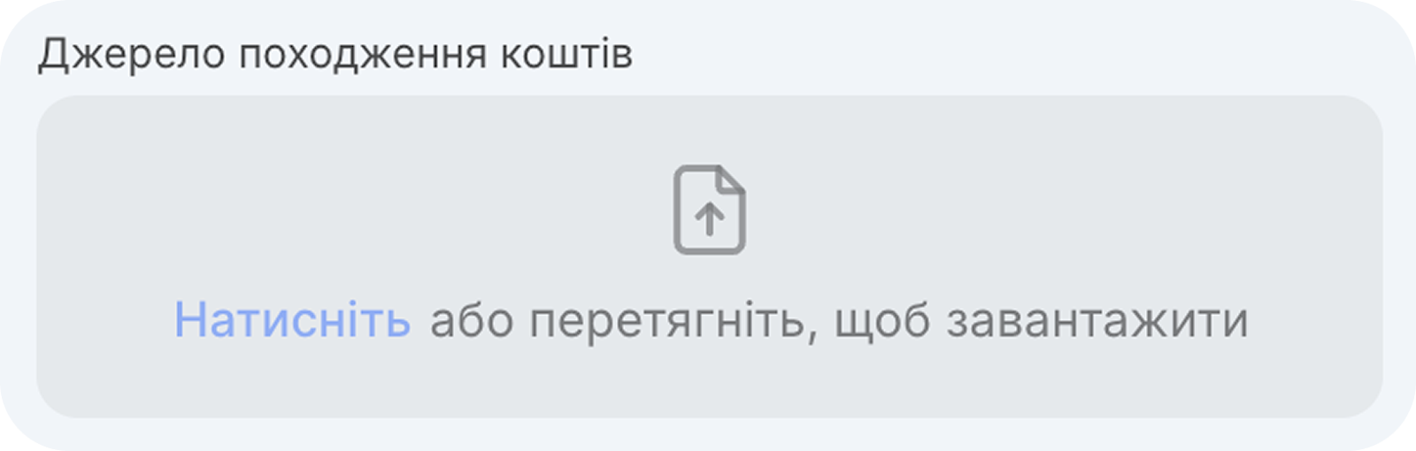 Важливо! Ви можете заздалегідь завантажити SoF під час поповнення у відповідному полі у вікні депозиту.