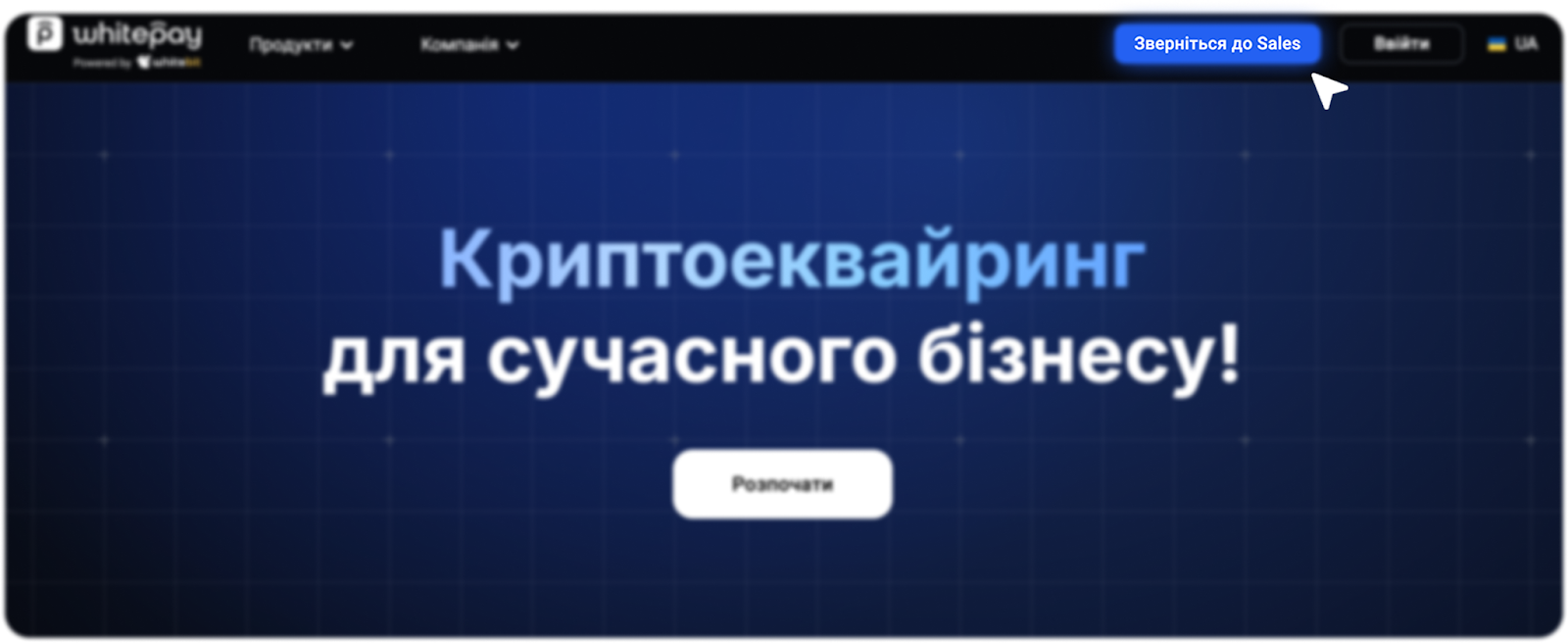 Натисніть на кнопку “Зверніться до Sales” у правому верхньому куті головної сторінки. Після цього заповніть контактну форму (або оберіть “Продовження в Telegram”), і з вами зв’яжуться найближчим часом.