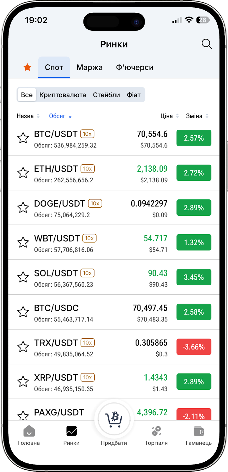 Також доступний перемикач "Усі маркети", що дає змогу фільтрувати відображувану інформацію за конкретними ринками.