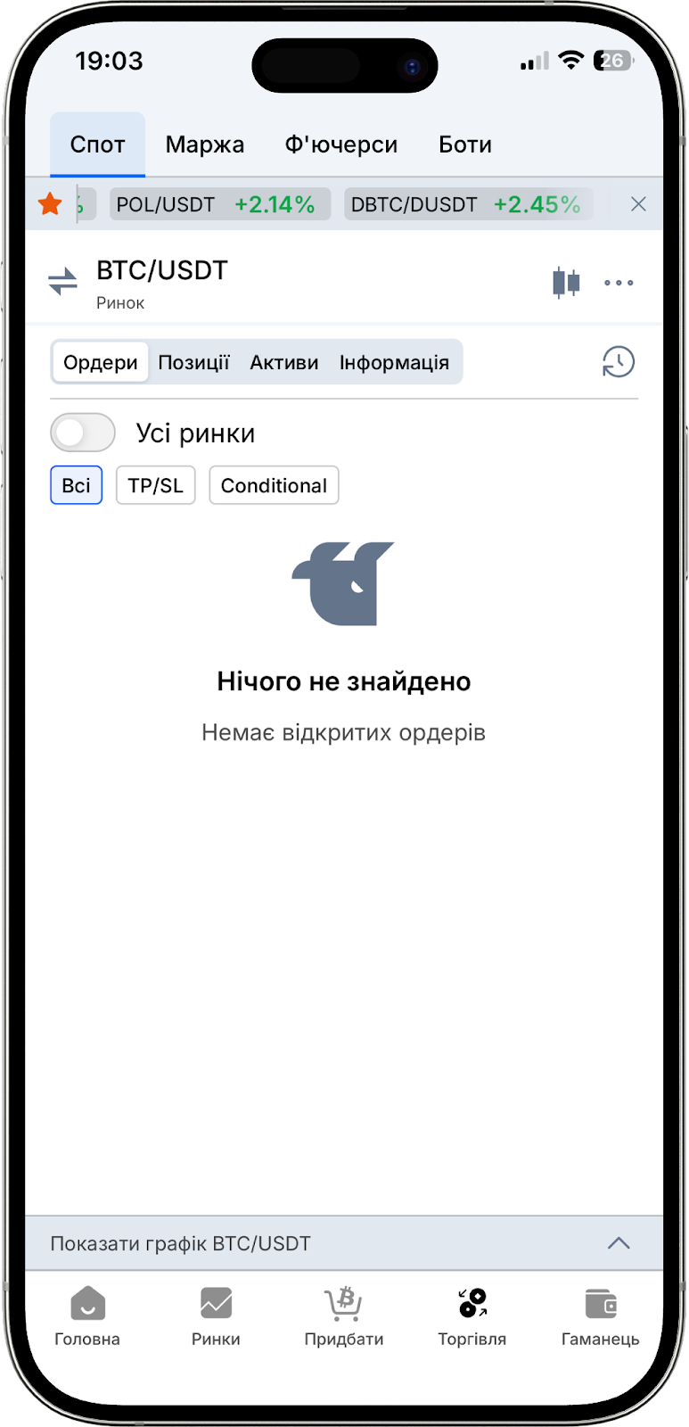 - Перевіряти активні ордери (включно з TP/SL і умовними ордерами).