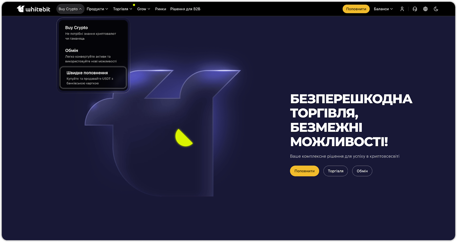 1. З головної сторінки перейдіть у розділ “Buy Crypto - Швидке поповнення”.