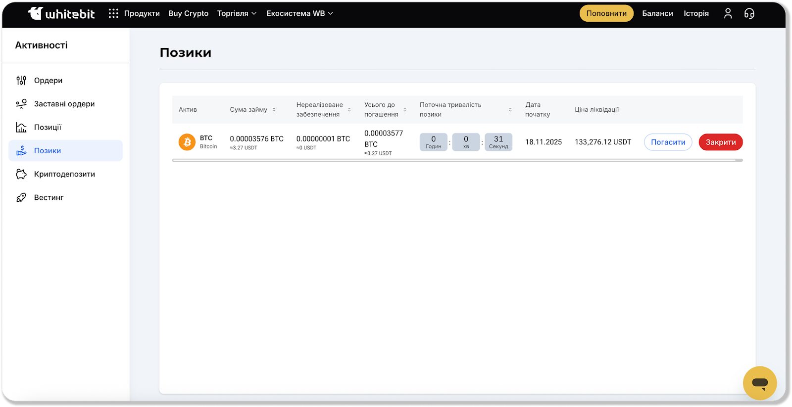 На цій сторінці відображаються ваші активні криптопозики.