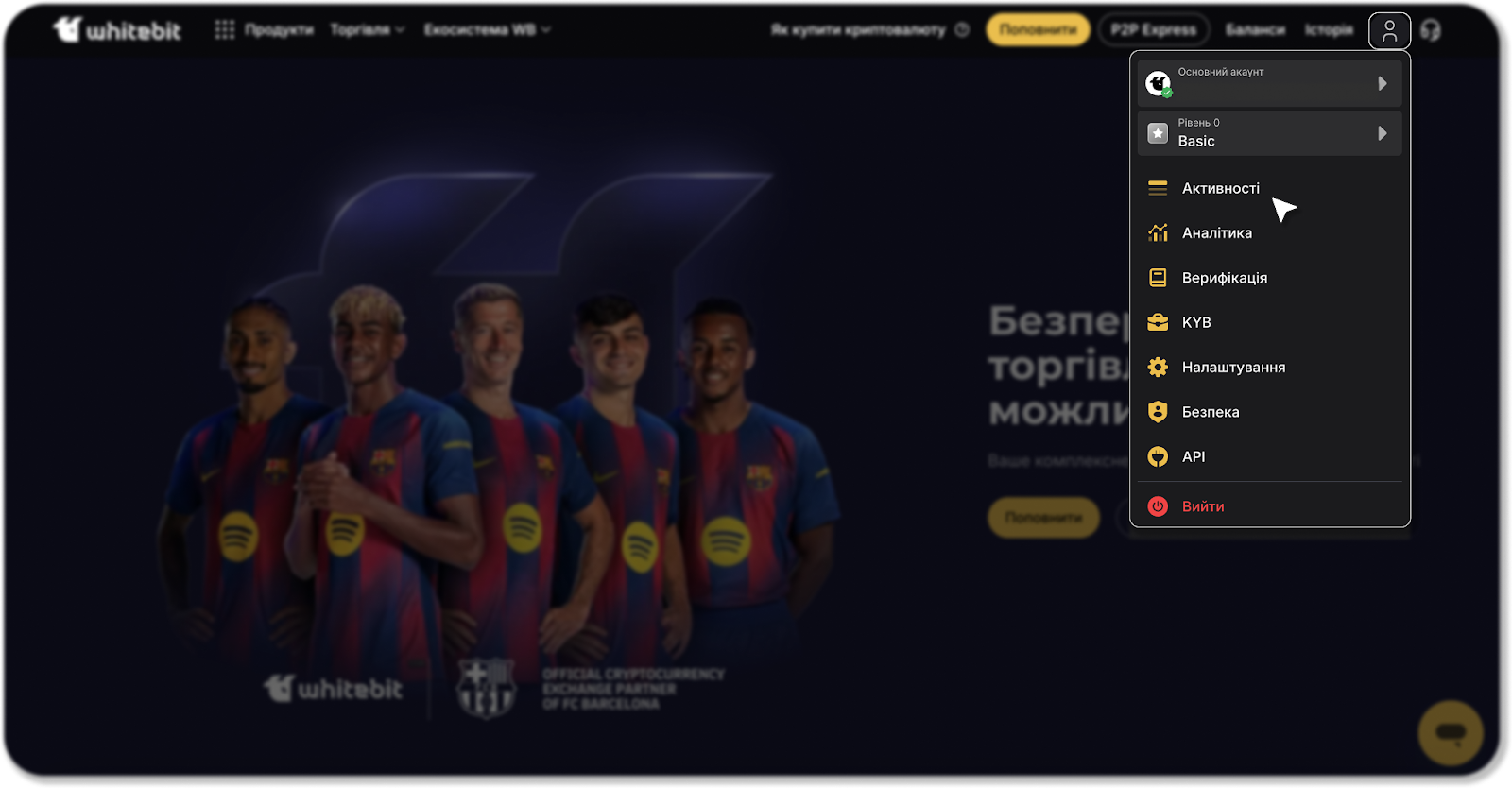 в правому нижньому кутку екрана (у застосунку WhiteBIT у правому верхньому кутку натисніть