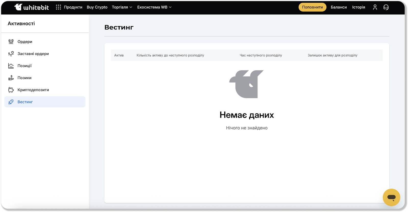 Отже, розділ “Активності” дозволяє ефективно відстежувати та керувати вашими відкритими ордерами, позиціями, позиками, криптодепозитами, а також надає доступ до даних вестингу.