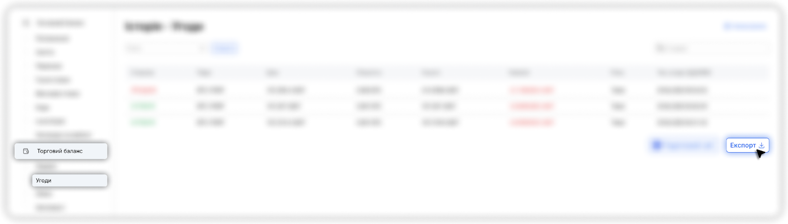 Сторінка розділена на чотири основні розділи: Основний, Торговий та Заставний баланси, а також Експорт. Перш ніж перейти до більш детального опису розділів, пропонуємо ознайомитися з загальними термінами, які ви побачите на сторінці «Історія».