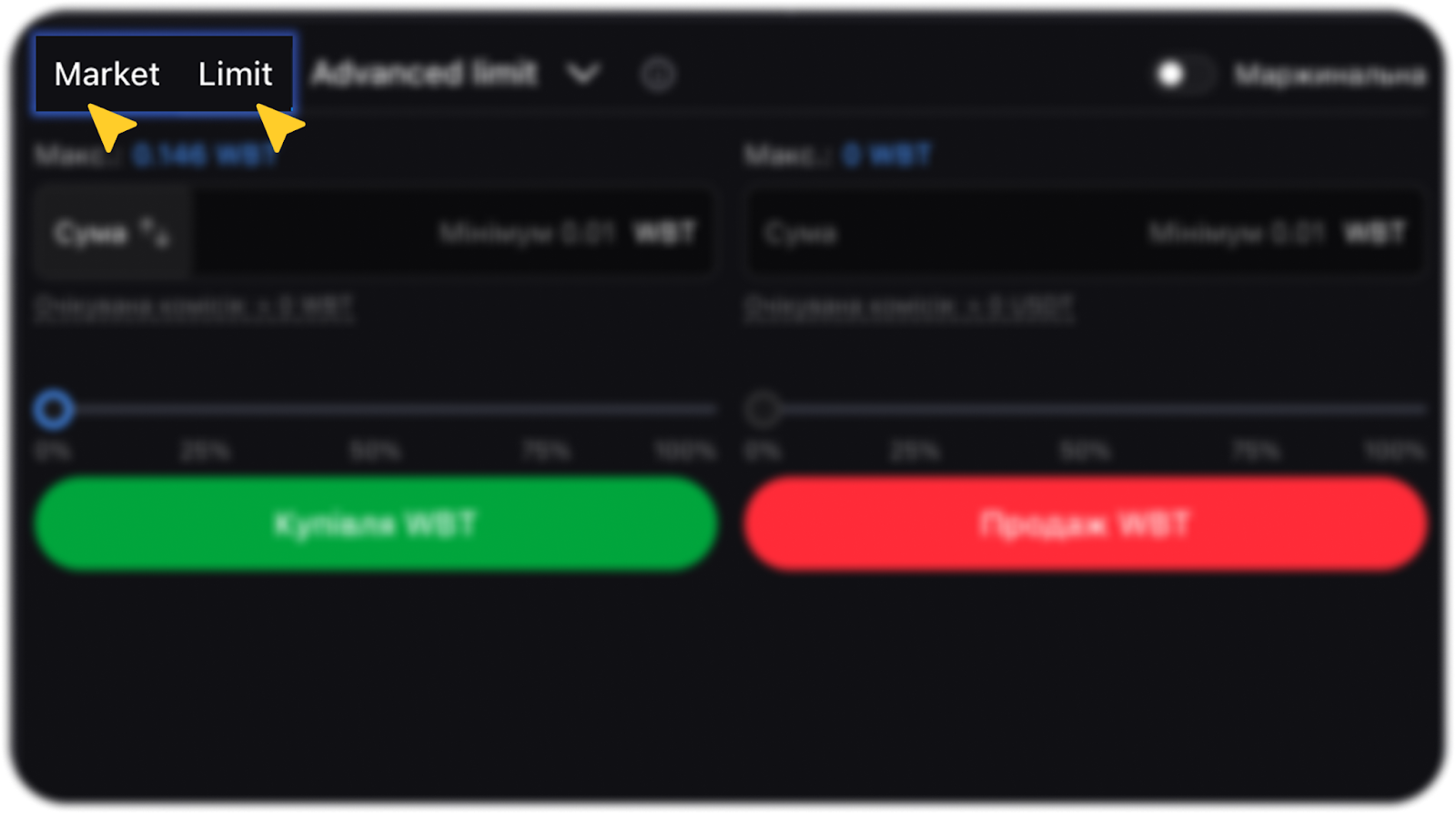 - Market ордер (ордер на купівлю або продаж за найкращою доступною ціною миттєво, з пріоритетом швидкості над точністю ціни)