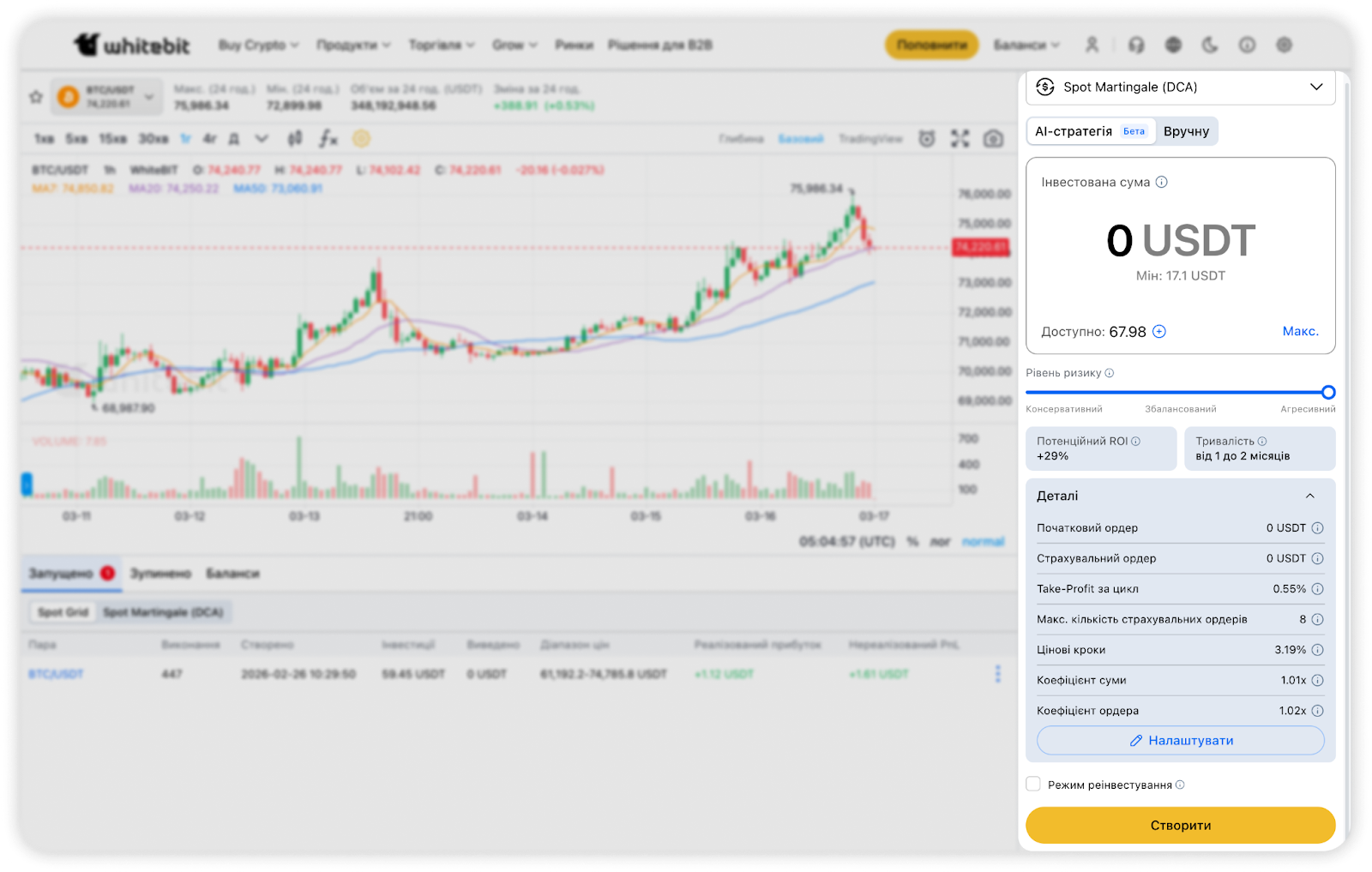 - Консервативний — ширші кроки, менші мультиплікатори, повільніше, але стабільніше накопичення позиції