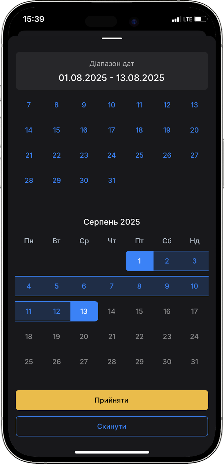 Мінімальний період формування звіту становить 1 день, а максимальний – 1 рік. Ви можете обрати потрібний вам період та натиснути “Прийняти”.